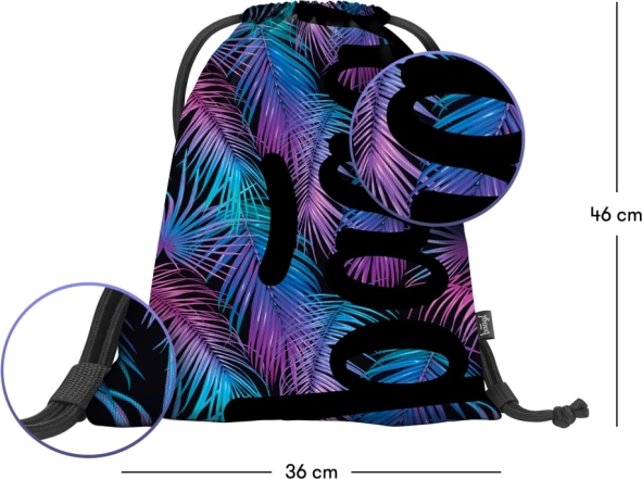 Odkrijte popolno šolsko opremo v enotnem dizajnu palm. Ergonomski nahrbtnik z organizatorjem in pregradnim žepom za 15" prenosnik poskrbi za preglednost in udobje, peresnica ohranja pisala urejena, vrečka pa je idealna za obutev ali interesne dejavnosti. Zahvaljujoč čvrsti konstrukciji, oblazinjenemu hrbtišču in vzdržljivim materialom je set pripravljen na vsakodnevni šolski tempo.