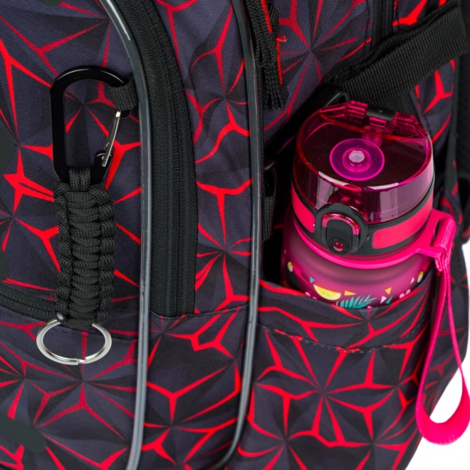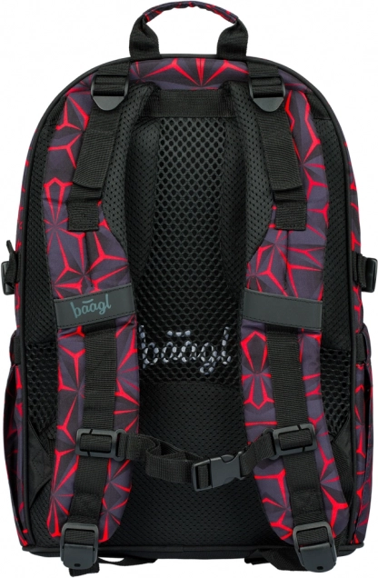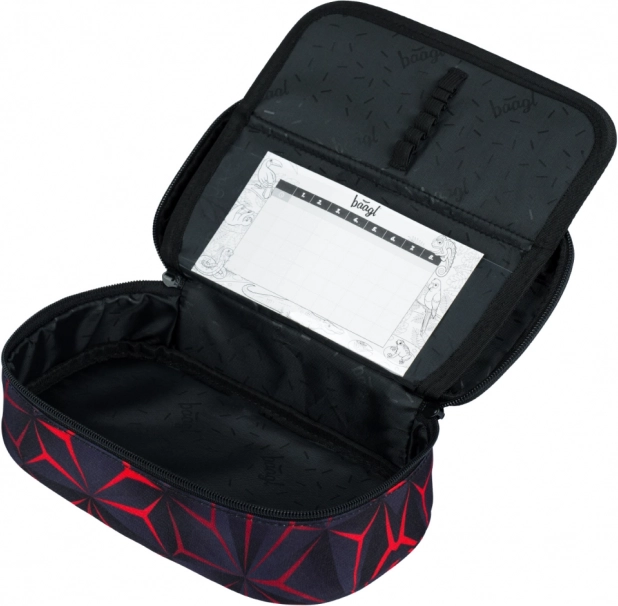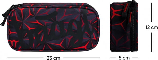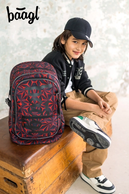 Celoten šolski set BAAGL Core Red Polygon v modernem črno‑rdečem poligonskem dizajnu je idealen za vsak šolski dan. Nahrbtnik s težo le 900 g razbremeni hrbet, hkrati pa nudi premišljeno organizacijo, vključno z žepom za 15" prenosnik ali tablico ter bočnimi žepi za steklenico. Peresnica etui drži obliko, ima izklopno pregrado in žep za urnik, vreča z zategovanjem na vrvice pa je odlična za copate, šport in prostočasne aktivnosti.