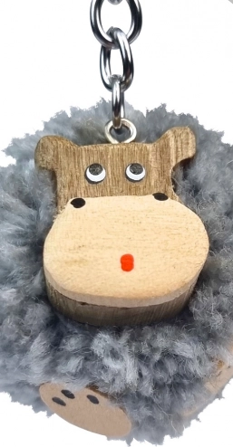 Očarljiv lesen obesek za ključe s cofom Povodni konj za ljubitelje narave. Ročno izdelan, edinstven in univerzalno darilo.