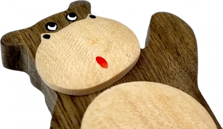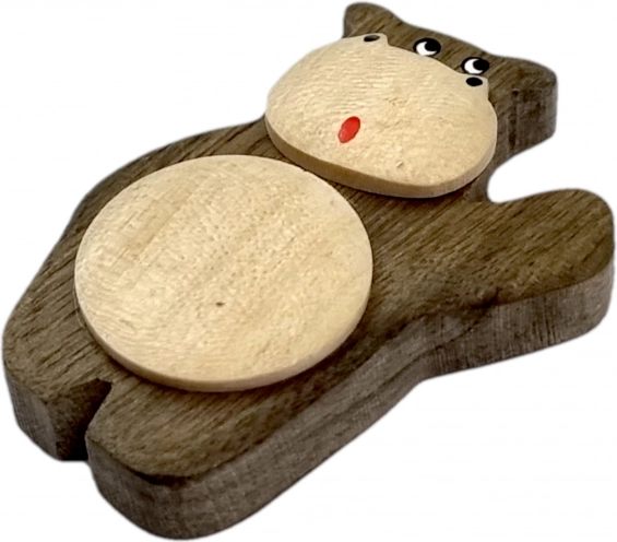 Prisrčen lesen magnet v obliki povodnega konja popestri vsak hladilnik ali magnetno tablo. Ročno je izdelan iz do pet vrst naravno obarvanega lesa in nežno dorišan za živahen izraz. Naravni materiali, poštena ročna izdelava in stilna dekoracija naredijo ta magnet odličnim drobnim darilom za ljubitelje živali in narave.
