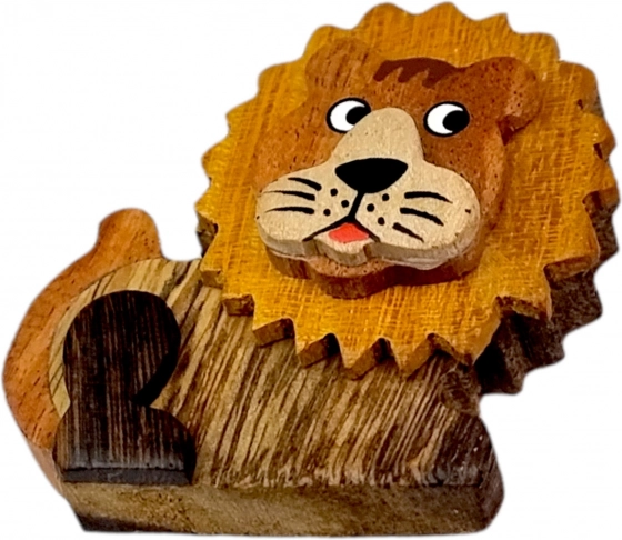 Ljubka lesena magnetka v obliki leva polepša vsak hladilnik ali tablo. Ročno je izdelana iz do pet različnih naravno obarvanih vrst lesa in nežno dorišana. Odlično majhno darilo in eleganten dekorativni element za ljubitelje narave in živali.