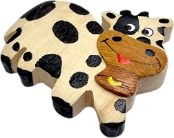 Ta lesen magnet v obliki krave je edinstvena dekoracija, ki v notranjost vnese stil in naravni čar. Vsak kos je original, saj je sestavljen iz do 5 vrst lesa z naravno različnimi barvami, brez dodatnega barvanja. Nežno ročno doriševanje poudari ljubek videz in skrbno izdelavo.