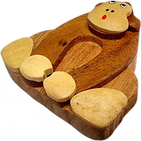 Vsaka opička je skrbno izrezljana in ročno dorišana. Naraven les ni barvan, zato izstopa njegova pristna struktura in odtenki.
