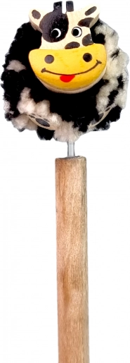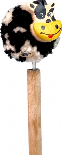 Mehek tekstilni cofek in vesela glavica krave dajeta svinčniku značaj. Idealno za pisanje, risanje ali kot dekoracija na mizi.