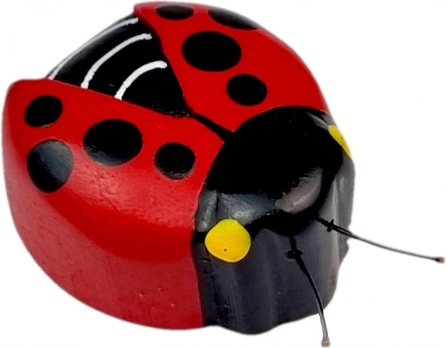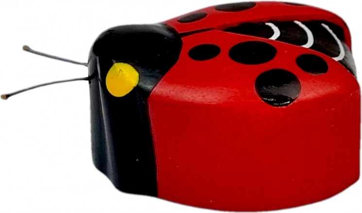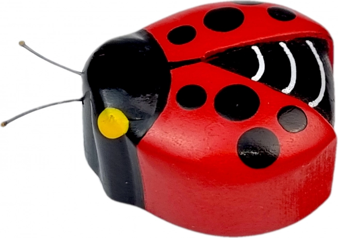 Ljubek lesen magnet v obliki pikapolonice polepša vsako hladilnik in magnetno tablo. Ročno izdelan in ročno dodelan, z poudarkom na naravnem videzu – nebarvan les v kombinaciji s kakovostnim magnetom in dekorativno izvedbo naredi iz tega magneta popolno majhno darilo za ljubitelje narave in živali.