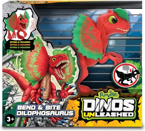 Prinesite domov navdušenje in zabavo s tem rjovečim in premičnim Dilophosaurusom!