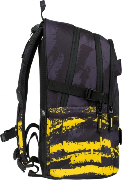 Popolnoma nastavljivi ramenski, prsni in stranski kompresijski trakovi se prilagodijo postavi in zagotavljajo udobje ves dan. Sprednji par trakov varno pritrdi skateboard, stranski žepi sprejmejo steklenico za pijačo, kakovostne zadrge YKK pa zagotavljajo zanesljivo zapiranje. Nahrbtnik je izdelan iz vodoodpornega recikliranega materiala, tehta le 850 g in ima nosilnost 7 kg.