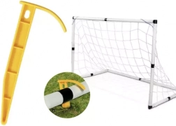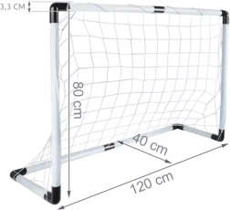 Lahek in stabilen otroški nogometni gol z merami 120 × 80 × 40 cm z mrežo, žogo, tlačilko in količki za pritrditev v tla. Idealen za vrt in igrišče – spodbuja gibanje, koordinacijo in veselje do igre. Set izstopa po enostavni montaži, nizki teži in vzdržljivi najlonski mreži za varne strele. Količki za sidranje zagotavljajo stabilnost na travi, pesku in zemlji, popolna oprema pa omogoča, da začnete igrati takoj.