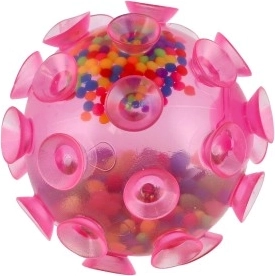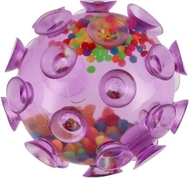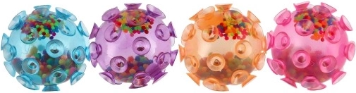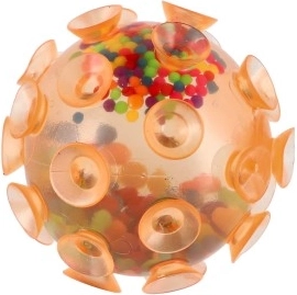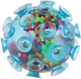 Odkrijte senzorično zabavo z žogico za stiskanje, ki je po celotni površini prekrita s priseski. Ob stiku z gladko površino se prisesa, zato nudi veliko ustvarjalnih iger. Barvite kroglice v notranjosti zagotavljajo prijeten upor pri stiskanju in pomirjujoč zvočni učinek.