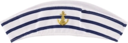 Vstopite v svet morja s klasično mornarsko čepico, ki izstopa z čisto belo izvedbo, modrimi črtami in izvezenim simbolom sidra. Čepica je izdelana iz prijetnega tekstilnega materiala, zato jo lahko brez težav nosite ves večer.