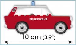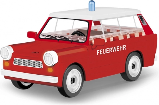Trabant 601 Universal spada med najbolj znane avtomobile nekdanje NDR in je znan po nenavadni karoseriji iz duroplasta, prostorni notranjosti in nezamenljivem videzu. Ta COBI stavebnica zvesto prikazuje gasilsko izvedbo z rdečo barvo in modro opozorilno lučjo v priročnem merilu 1:35.