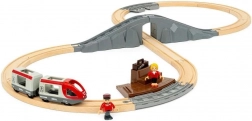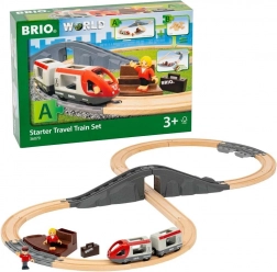 22-delni set vključuje tire v obliki osmice, osebni vlak, dve figurici in platformo – idealen prvi korak v svet BRIO.