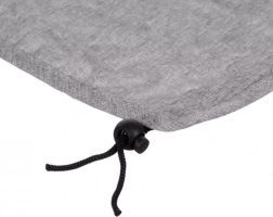 Namestitev je hitra in intuitivna – elastiko potegnete preko strešice, z vrvicami s stopperji pa jo pritrdite na okvir vozička. V paketu najdete kompaktno etui z zapiranjem na ježka, ki ne zavzame prostora v košari ali previjalni torbi.
