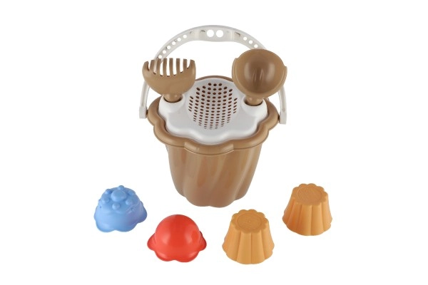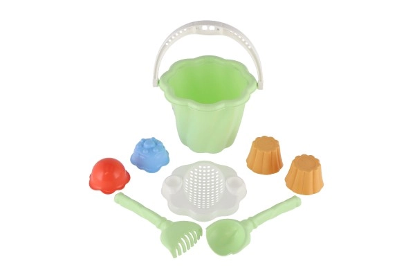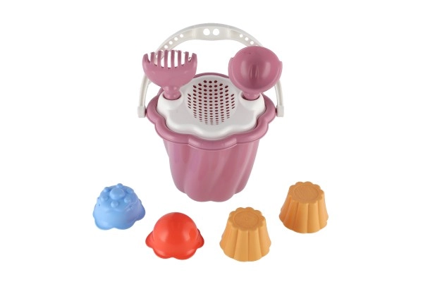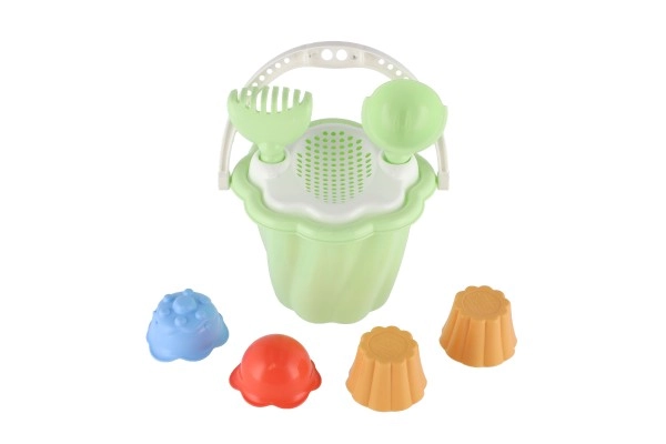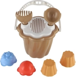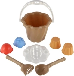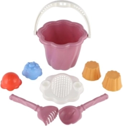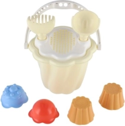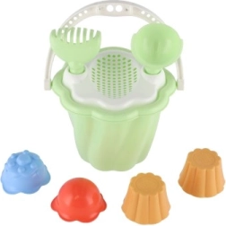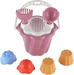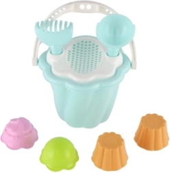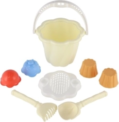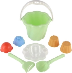 S tem odličnim plastičnim kompletom za pesek bodo vaši otroci uživali v urah zabave na plaži ali v peskovniku. Vsebuje vedro, lopatko, grabljice in štiri modelčke v mešanih barvah.