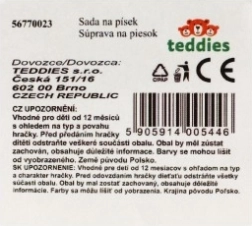 Set vključuje vedro, lopatko, grabljice in štiri modelčke, idealno za neskončne ure igre v peskovniku ali na plaži.