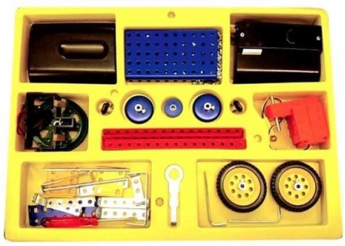 - Kovinski deli, vijaki, matice, plastična kolesa/gosenice