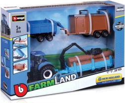 Odkrijte realistično izdelan model traktorja za male kmete in zbiratelje. Darilni set Bburago v merilu 1:43 ponuja robustno izvedbo, prosto vrteča se kolesa in podroben tisk znanih znamk, kot so NEW HOLLAND, FENDT in MASSEY FERGUSON.
