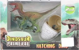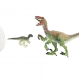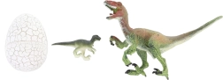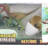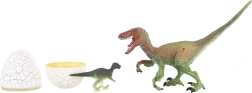 Figurice vključujejo tudi dinozavra, ki se pravkar izlega iz jajca.