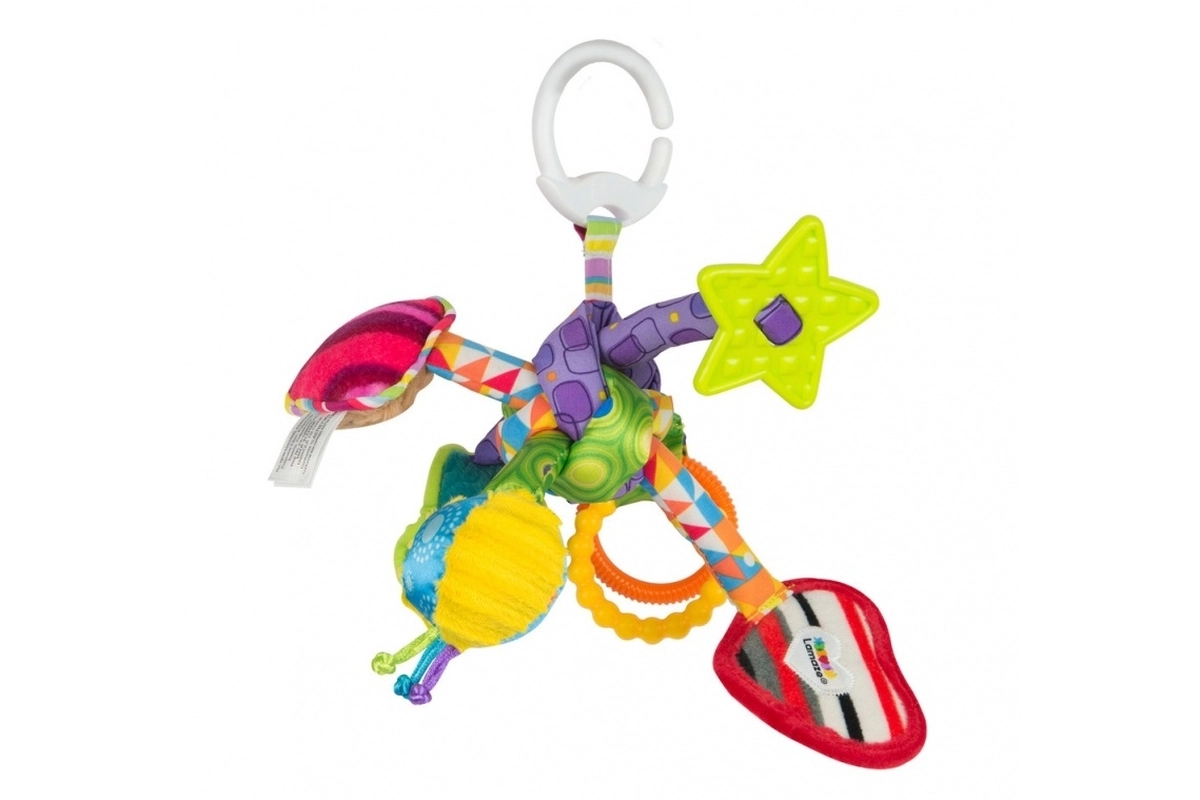 Odkrijte igrivo senzorično igračo Lamaze Skrivnostni vozel, ki podpira razvoj otroka od rojstva. Združuje raznolike teksture in barve za spodbujanje vida in tipa, ob potresanju oddaja zvoke za razvoj sluha ter ponuja kontrastne črno-bele vzorce za najmlajše. Del kompleta je grizalo v obliki zvezdice za olajšanje bolečih dlesni in varno ogledalce za igro »kukuc«. Praktičen viseči sponk omogoča enostavno pritrditev na voziček, posteljico ali avtosedež.