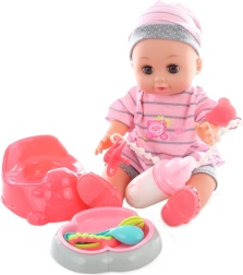 Pakiranje vsebuje punčko z dodatki za nego – kahlico, čevljičke, stekleničko, krožniček in drugo. Odličen začetek v svet iger vlog staršev.