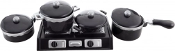 Vsebuje 3 lonce, vok ponev, 4 pokrove, kuhalnik in dodatke za realistično igro kuhanja.