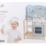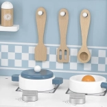 Otroci imajo pri roki pomivalno korito, pečico, kuhalno ploščo in napo – vse v robustni leseni izvedbi s praktičnim shranjevalnim prostorom. Idealno za vsakodnevne kulinarične dogodivščine.