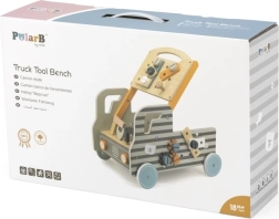 Odkrijte zabavno in praktično leseno premično delovno mizico v obliki avtomobila znamke POLARB, ki otrokom od 18 mesecev pomaga razvijati veščine skozi igro. Otroci lahko zabijajo žebljičke, zategujejo vijake s ključem, privijajo deščice in zobnike ter izkoristijo zadnji odlagalni prostor za orodje in igrače. Odlična izbira za razvoj fine motorike, koordinacije in ustvarjalnosti.