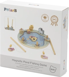 Zabavna lesena magnetna igra ribolov POLARB od VIGA prinaša otrokom od 18 mesecev barvito lovljenje ribic s številkami in pikami. Set vsebuje okroglo podlogo, 2 palici, kocko in 12 ribic. Igra podpira koordinacijo oko–roka, fino motoriko, učenje števil in družabno interakcijo pri tekmovanju in sodelovanju.