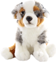 Dodelan obrazek, ušeska in večbarvna dlaka dajejo igrački avtentičen videz avstralskega ovčarja.
