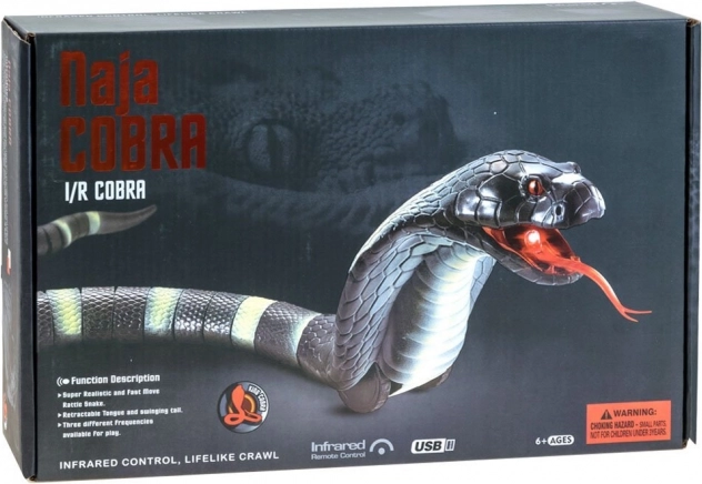 Realistična RC igrača v obliki kobre prinaša ogromno zabave za otroke in odrasle. Upravljanje poteka z daljinskim upravljalnikom v obliki jajca, ponuja življenju podoben gib in USB polnjenje za udobno uporabo. Odlična izbira za interaktivno igro, ustvarjalne ideje in drobne potegavščine.