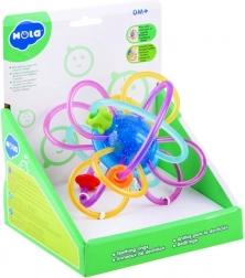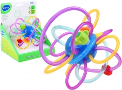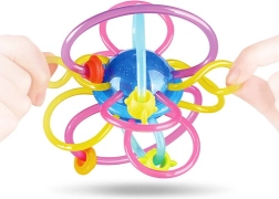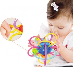 Zahvaljujoč prožnim elementom bo otrok igračo brez težav držal v rokah. Gladke in mehke površine upogljivih zank bodo odlično masirale otrokove dlesni. Barvne kroglice, nameščene na upogljivih zankah, bodo zlahka drsele po igračah.