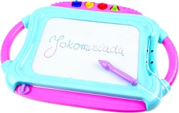 Praktični drsni brisalnik v trenutku izbriše celotno sliko, zato je zabava neskončna. Zaradi robustne konstrukcije in udobnih ročajev je tabla idealna za doma in na poti. Elegantna embalaža jo naredi za odlično darilo za male ustvarjalce.