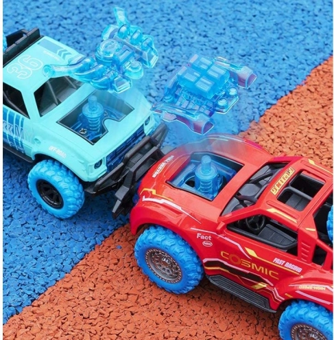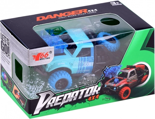 Zabaven kovinski avtomobilček 4x4 Predator prinaša akcijsko vožnjo z vzmetnim pull-back pogonom, svetlobnimi efekti in realističnimi zvoki motorja, trka in alarma. Zahvaljujoč vzdržljivi zasnovi s kovinsko karoserijo, gumijastimi pnevmatikami in čvrstim podvozjem zmore tudi divje kaskaderske trike.
