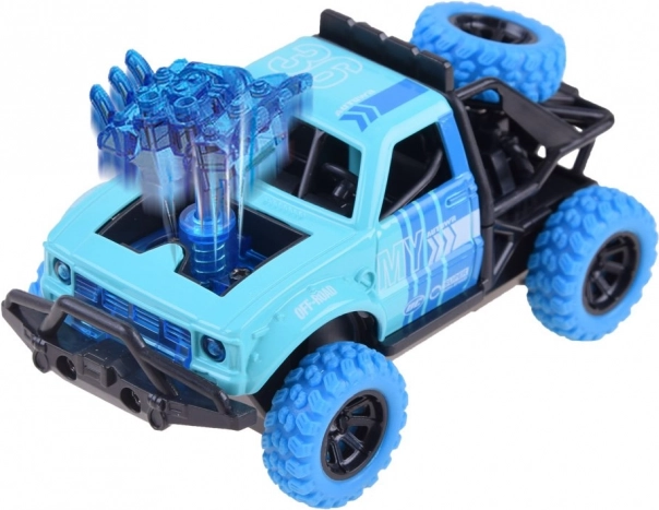 Zahvaljujoč kovinski karoseriji, gumijastim pnevmatikam in čvrstemu plastičnemu podvozju igrača zdrži dolge ure igre doma in na prostem. Odlična ideja za darilo za male ljubitelje avtomobilov in off‑road dogodivščin.