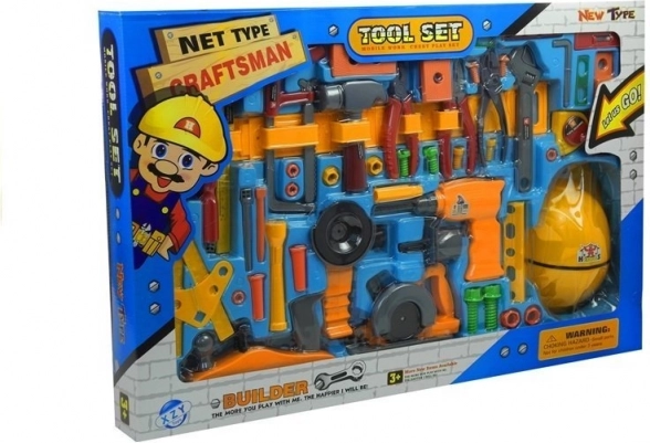 Set vključuje pogonske elemente (vrtalnik, brusilko in krožno žago) na 2× AA 1,5 V baterije, prav tako ročna orodja in pritrdilni material za sestavljanje in vijačenje. Praktični delovni pas drži orodje vedno pri roki ter spodbuja samostojnost in organizacijo dela.