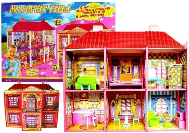 Ta prostorna vila za punčke bo navdušila otroke z bogatimi detajli in možnostmi aranžiranja. Odprta zasnova z medsebojno povezanimi prostori omogoča, da punčke prosto prehajajo in zlahka dosežejo vse kotičke hišice. Zahvaljujoč 128 delom si lahko otroci ustvarijo svoj sanjski dom in ga stalno spreminjajo glede na razpoloženje.