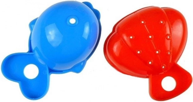 Set vsebuje tudi modelčka v obliki ribice in školjke, ki jih otroci lahko uporabljajo za igro s peskom in vodo.