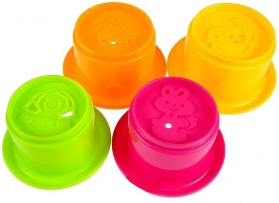 Komplet vsebuje barvite zložljive lončke z motivi ptička, deževnika in zajčka za še več zabave.