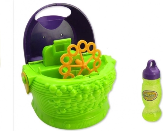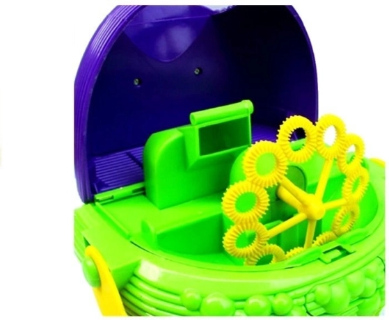 Uporaba stroja je zelo enostavna: pritisnite gumb na sprednji strani, odprite zgornji pokrov, nalijte posebno tekočino, zaprite pokrov in vključite stroj z gumbom ON/OFF. To je vse, zdaj lahko uživate v pogledu na čudovite mavrične mehurčke, ki letijo po zraku.