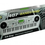 Odkrijte otroške elektronske klaviature s 54 tipkami, osvetljenim LCD in mikrofonom – idealne za prve glasbene korake. Ponujajo 100 tonov, 100 ritmov, 10 demo skladb, 2 učna načina, funkciji snemanja in predvajanja ter dva stereo zvočnika. Napajanje z adapterjem 230 V ali 6× AA; primerno za otroke od 3 let.