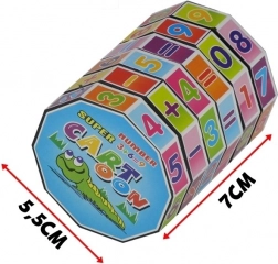 Ta pametna in zabavna uganka v obliki valja pritegne pozornost s pisanimi barvami in preprostim principom: vrtite posamezne obroče s številkami in matematičnimi simboli ter sestavljajte pravilne primere. Otroci se tako na naraven način učijo in utrjujejo računske spretnosti, razvijajo logično razmišljanje, zbranost in fino motoriko – skratka učenje skozi igro.