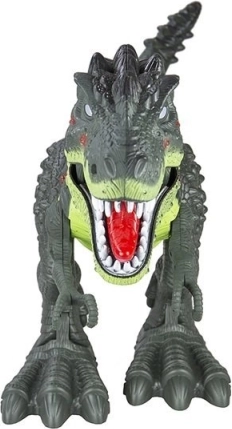 Velik hodeči dinozaver T‑Rex na baterije bo razveselil male ljubitelje prazgodovine. Po vstavitvi baterij se giblje, ziba z glavo in repom, spremljajo pa ga svetlobni in zvočni učinki. Ima svetleče oči in jezik, ki med hojo žarijo. Odlično darilo za vsako zbirko dinozavrov.