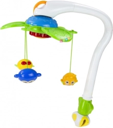 Ta vrtiljak nad posteljico pomaga otrokom gladko preiti iz igre v spanec. Nežna melodija iz mehanske glasbene skrinjice in počasno vrtenje visečih igrač umirita vašega malčka in ga pripravita na dremež. Premišljen naklon krakov zagotavlja, da otrok dobro vidi vse elemente.