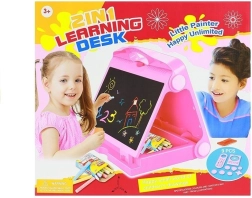 Nova, izobraževalna in velika tabla, ki bo razveselila vsakega navdušenca nad umetniškimi aktivnostmi. Tabla ponuja dve površini za ustvarjanje – ena stran za pisanje s kredami in druga za pisala. Obe površini omogočata uporabo šablon za sledenje, kar prinaša dodatno dimenzijo ustvarjalne zabave.