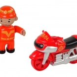 Motorno kolo je opremljeno s podrobno figurico gasilca, kar doda pristnost igri.