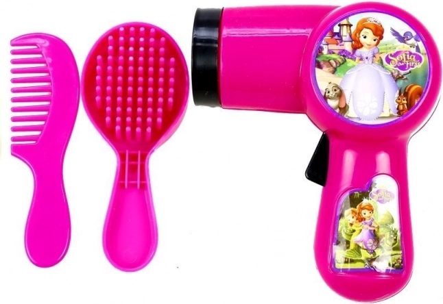- kovček, otroški sušilnik za lase, krtača, glavnik, krona, 2 para uhanov, 2 sponki za lase
