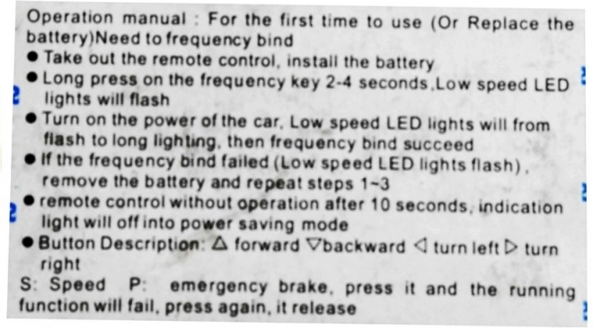 Daljinski upravljalnik TX1 2.4G je idealen za starševski nadzor nad otroškim vozilom. Z funkcijo P (park) lahko vozilo takoj ustavite, z gumbom S izberete hitrost, prek gumba Frequency pa hitro seznanite upravljalnik z avtom.