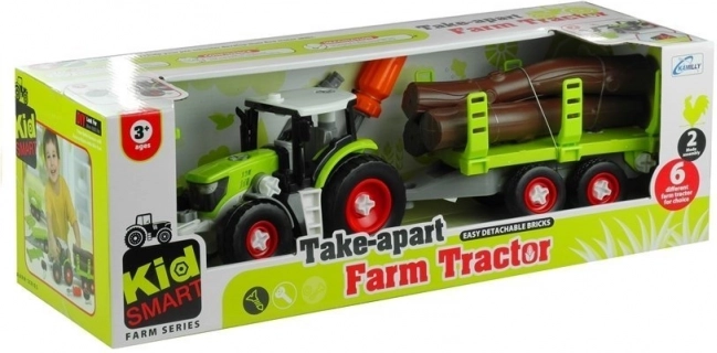 Razstavljivi traktor s prikolico pomaga razvijati motorične sposobnosti, kreativnost in samostojnost otrok. Vijačenje in demontaža posameznih delov krepi logično razmišljanje in samozavest. Izdelano iz plastike za dolgo življenjsko dobo igrače. Traktor s prikolico ima vrtljiva parketna kolesa, ki omogočajo realistično vožnjo.