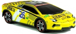 Rumena karoserija z detajlnimi nalepkami in številko 26 v merilu 1:14 deluje pristno in vabi k dirkanju doma in na prostem.