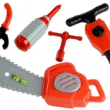 Radijska postaja za »povezavo« enote in komplet orodij, vključno z žago, kleščami in izvijači z izmenljivimi nastavki, razvijajo spretnost in domišljijo.